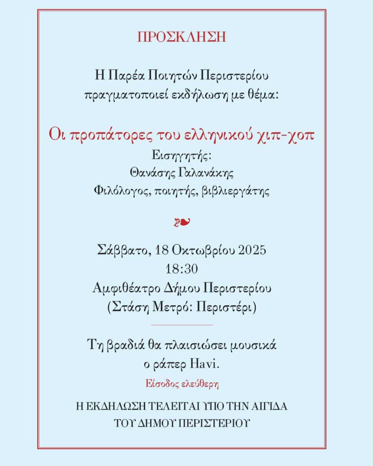 Παρέα Ποιητών Περιστερίου - Πρόσκληση: «Οι προπάτορες του ελληνικού χιπ-χοπ»