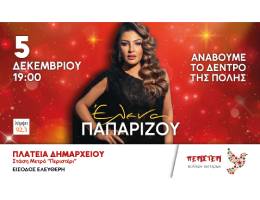 Στο εορταστικό πρόγραμμα ξεχωρίζει η μεγάλη συναυλία με την Έλενα Παπαρίζου, η οποία θα χαρίσει μια φαντασμαγορική μουσική βραδιά γεμάτη ρυθμό, λάμψη και εκπλήξεις. Χορηγός επικοινωνίας: ΛΑΜΨΗ 92.3 FM