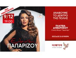 Στο εορταστικό πρόγραμμα ξεχωρίζει η μεγάλη συναυλία με την Έλενα Παπαρίζου, η οποία θα χαρίσει μια φαντασμαγορική μουσική βραδιά γεμάτη ρυθμό, λάμψη και εκπλήξεις. Χορηγός επικοινωνίας: ΛΑΜΨΗ 92.3.