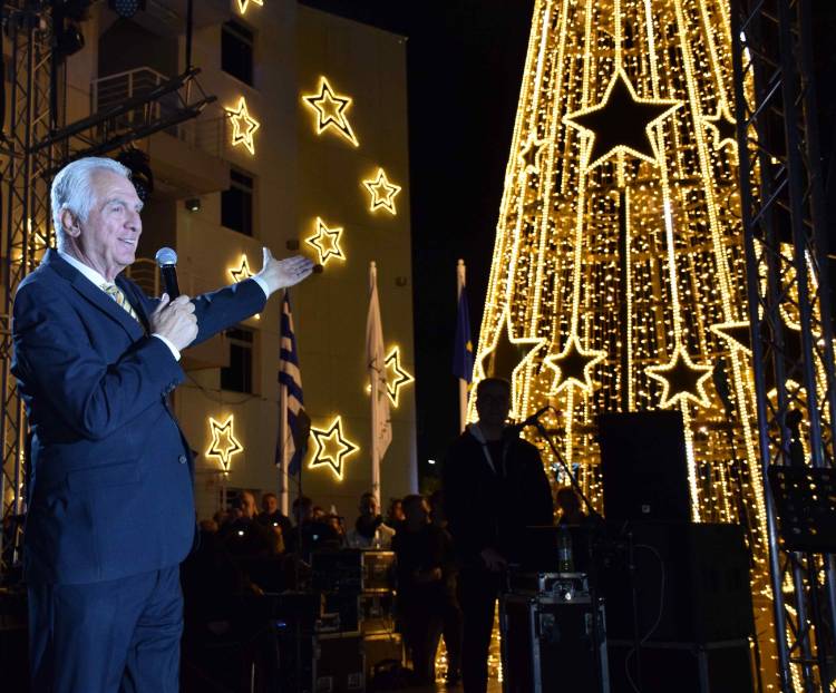 Άνθρωποι της καρδιάς μου, φίλες και φίλοι, Περιστεριώτες και Περιστεριώτισσες, σας εύχομαι καλές γιορτές, καλά Χριστούγεννα, καλή χρονιά, καλή τύχη σε όλους. Σας αγαπώ απεριόριστα! Το δέντρο της πόλης άναψε…».