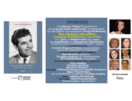 Οι Εκδόσεις Όγδοο, υπό την αιγίδα της Δημοτικής Επιχείρησης Πολιτιστικής Ανάπτυξης Δήμου Περιστερίου (ΔΕΠΑΔΠ), έχουν την τιμή να σας προσκαλέσουν σε μια ξεχωριστή βραδιά μνήμης, λόγου και μουσικής.