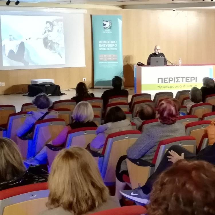 Με ιδιαίτερο ενδιαφέρον πραγματοποιήθηκε τη Δευτέρα 16 Μαρτίου 2026, στο Πολιτιστικό – Συνεδριακό Κέντρο του Δημαρχιακού Μεγάρου Περιστερίου, διάλεξη με θέμα «Νίτσε και Φουκώ: Η Φιλοσοφία επί του (Παρ)όντος», στο πλαίσιο των δράσεων του Δημοτικού Ελεύθερου Ανοικτού Πανεπιστημίου (Δ.Ε.Α.Π.) Περιστερίου.