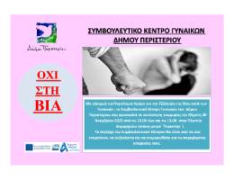 Πέμπτη 20 Νοεμβρίου 2025 • 10:00–13:00 • Πλατεία Δημαρχείου (Μετρό «Περιστέρι»)Με αφορμή την Παγκόσμια Ημέρα για την Εξάλειψη της Βίας κατά ...