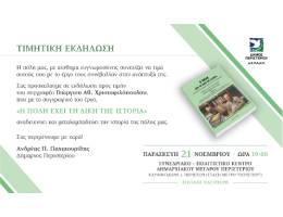 Ο Δήμαρχος Περιστερίου Ανδρέας Π. Παχατουρίδης προσκαλεί τους πολίτες στην τιμητική εκδήλωση που διοργανώνει ο Δήμος Περιστερίου προς τιμήν ...
