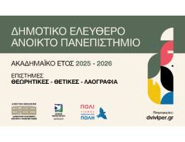 Το Δημοτικό Ελεύθερο Πανεπιστήμιο Περιστερίου ξεκινά το Εαρινό Εξάμηνο, που θα διαρκέσει από τον Φεβρουάριο 2014 έως τον Ιούνιο 2014. Έμπ...