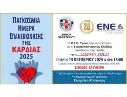 ΚΕΠ ΥΓΕΙΑΣ ΔΗΜΟΥ ΠΕΡΙΣΤΕΡΙΟΥ - ΕΝΩΣΗ ΝΟΣΗΛΕΥΤΩΝ ΕΛΛΑΔΟΣ (Ε.Ν.Ε.)Με αφορμή την Παγκόσμια Ημέρα Επανεκκίνησης της Καρδιάς 2025, ο Δήμος Περιστ...