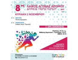 Με απόλυτη επιτυχία πραγματοποιήθηκε, την Κυριακή 2 Νοεμβρίου 2025, ο 8ος Λαϊκός Αγώνας Δρόμου – Peristeri Run 2025, που διοργάνωσε ο Δήμος ...